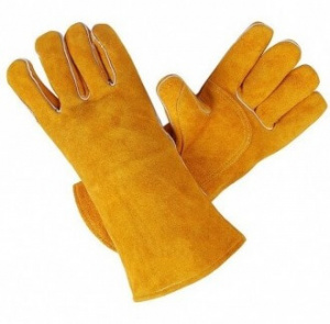 Перчатки кожаные(спилковые) ЖЁЛТЫЕ на подкладке, длина: 35 см, размер 14 КИТАЙ (60)