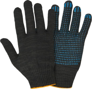 Перчатки х/б 10 кл 4-х нитка с ПВХ "черные" РФ (36 гр.) (500)