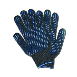 —Перчатки х/б 10 кл 4-х нитка с ПВХ "черные" РФ (36 гр.) (500)
