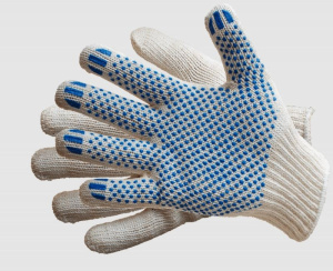 Перчатки х/б 7,5 класс 6-нитка с ПВХ "белые" РФ (68-70 г.) (300)